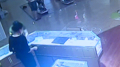 讓人沒想到的是,男子指示柜員換一枚戒指就在柜員彎腰整理貨品的時候男子拿著鉆戒轉(zhuǎn)!身!就!跑!