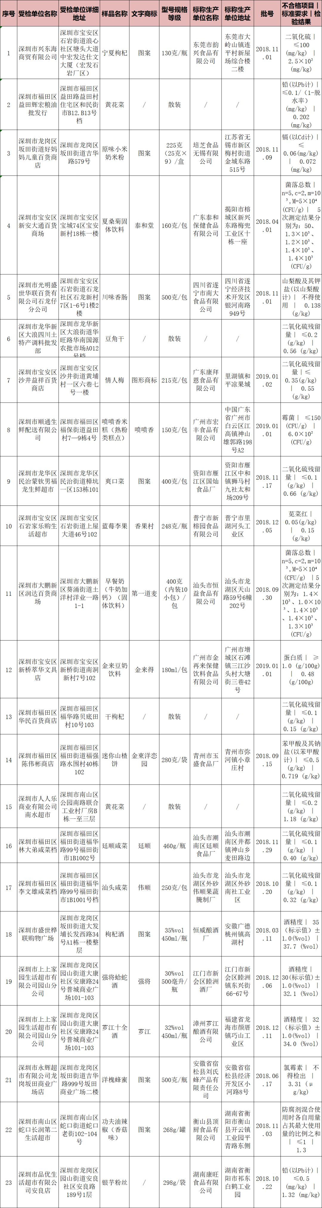 本次共抽檢流通環(huán)節(jié)食品2131批次,涉及流通環(huán)節(jié)經(jīng)營主體529家次,共檢測食品指標13373項次。其中檢出不合格樣品23批次,涉及不合格食品類別有茶葉及相關(guān)制品1批次,淀粉及淀粉制品1批次,蜂產(chǎn)品1批次,糕點1批次,酒類3批次,肉制品1批次,蔬菜制品6批次,水果制品4批次,特殊膳食食品1批次,調(diào)味品1批次,飲料3批次;涉及不合格項目類別為獸藥殘留、金屬等元素污染、微生物污染、食品添加劑、品質(zhì)指標。