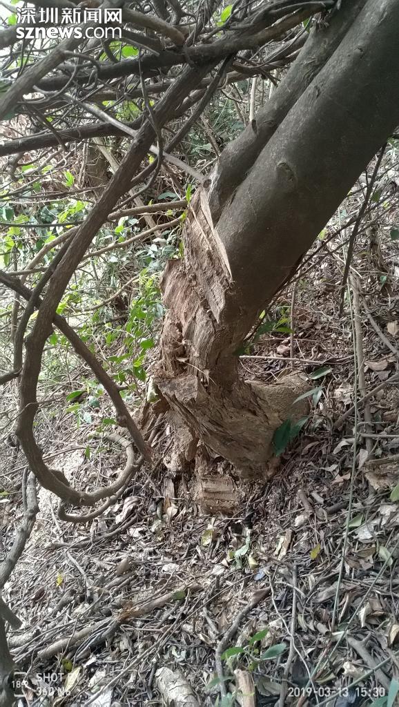 該網(wǎng)友提及的應(yīng)人石村位于深圳石巖,從地圖上看,其“后山”與羊臺山森林公園連為一體,是附近居民閑暇時(shí)度假踏青的重要選擇。據(jù)了解,網(wǎng)友“詩奴L”于今年3月中旬上山游玩,游玩途中發(fā)現(xiàn)原本茂盛的野生沉香樹大多遭人砍伐。“不法分子窮盡一切手段,用鉆、削、劈、鋸等來對沉香樹進(jìn)行摧殘,這簡直是屠殺式的洗劫!”該網(wǎng)友表示,看到這么多野生沉香樹被殘暴砍伐,真地讓人很氣憤。