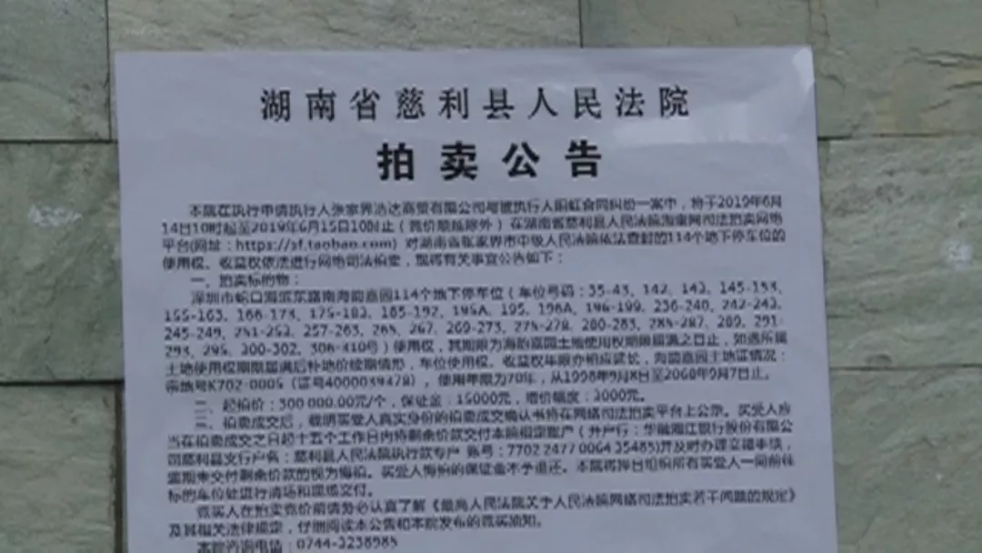 湖南省慈利縣人民法院張貼的拍賣公告,也引起了南山區(qū)蛇口街道辦司法部門的警覺, 海韻嘉園物業(yè)管理處主任表示,昨天街道司法所,包括文明辦的人,都有到小區(qū)了解情況。
