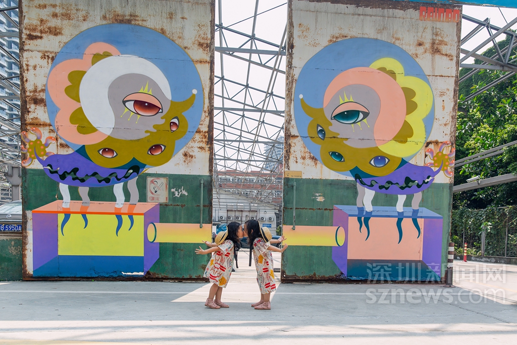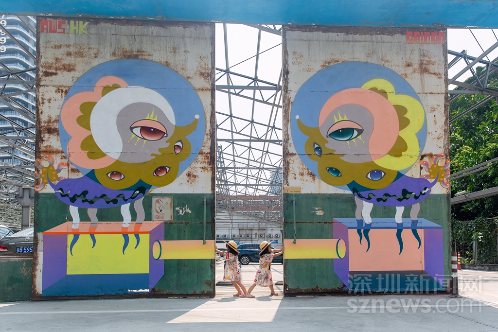 在城市公共空間中,涂鴉藝術(shù)不僅是一種重要的人文景觀,同時(shí)還能給人一種視覺享受,使單一的生活變得富有色彩。來(lái)自中國(guó)香港的全職藝術(shù)家彭怡擅長(zhǎng)用涂鴉進(jìn)行故事創(chuàng)作,帶來(lái)作品《雙觀》,以左右對(duì)稱相望的停車場(chǎng)守護(hù)神的形象感染車主與行人,傳達(dá)平穩(wěn)冷靜的力量。