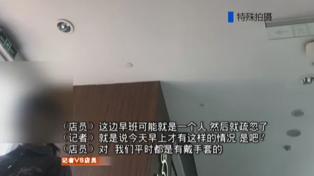該店的同事趕緊進(jìn)到廚房進(jìn)行提醒,這名店員隨后也急忙戴上了手套!