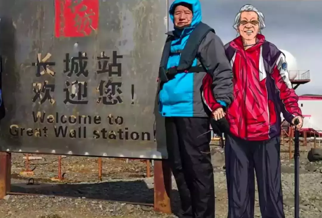 用手繪定格這份愛,幫助邱協耕和他最愛的人南極“合影”。圖源:央視新聞