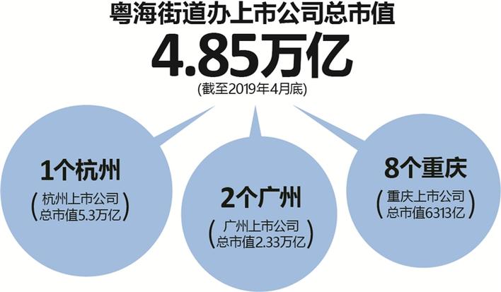 有媒體統(tǒng)計顯示,在粵海街道這個開車10分鐘就能逛一圈的“彈丸之地”,有112家公司屬于粵海街道辦,包括4月底市值超過3萬億元人民幣的騰訊控股,中國恒大、華潤置地、騰訊音樂、邁瑞醫(yī)療、中興通訊等5家千億市值公司,以及大族激光、深信服、金蝶國際等近20家百億市值公司。截至到今年4月底,A股、H股和美股上市的深圳市粵海街道辦上市公司有多達112家,總市值達到了4.85萬億元,而杭州市全市的上市公司總市值為5.3萬億元。