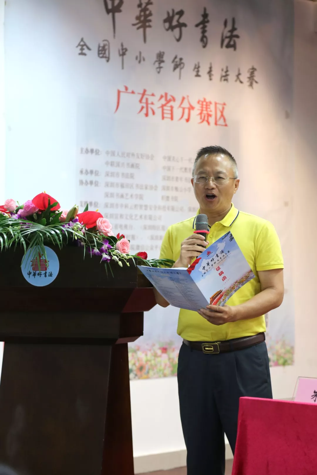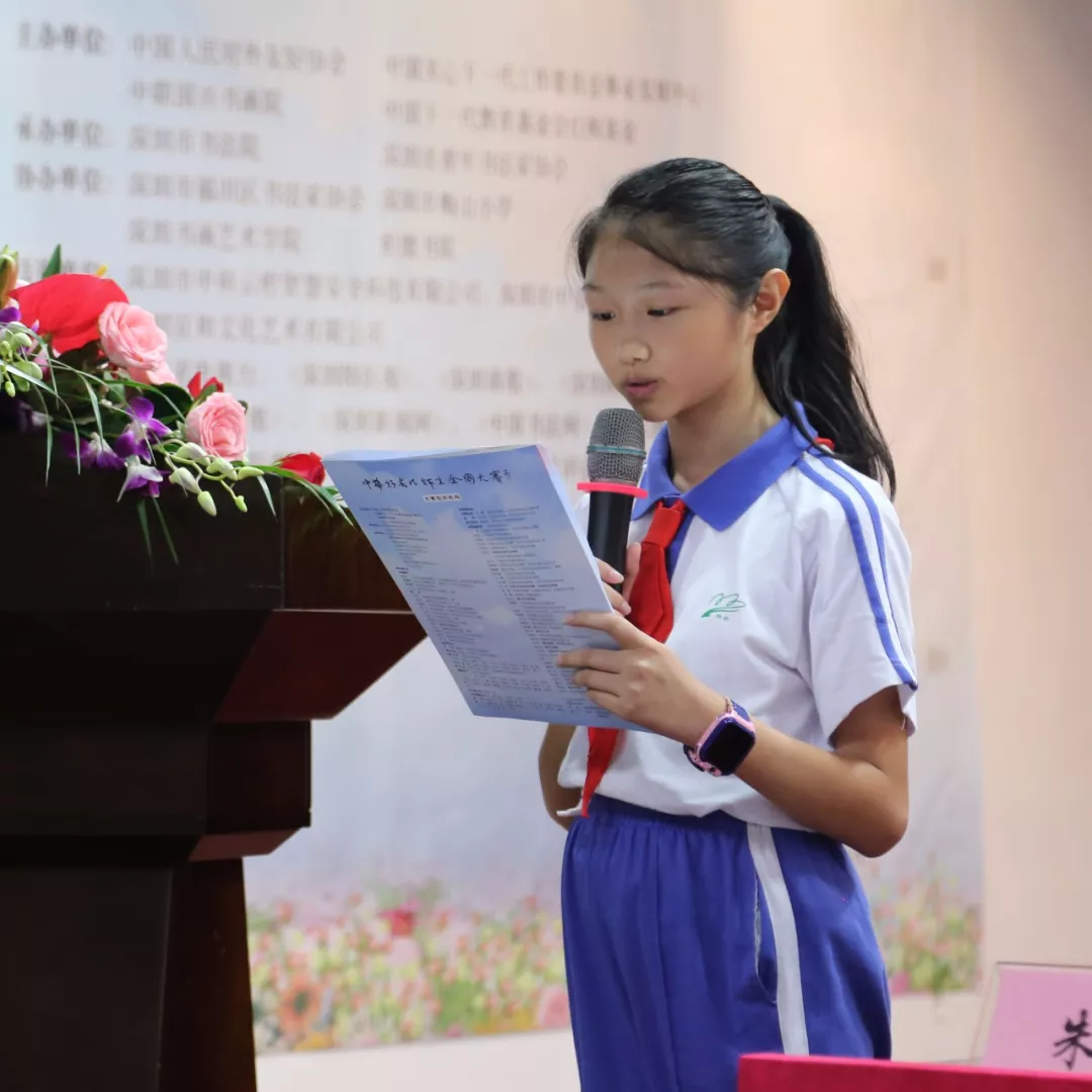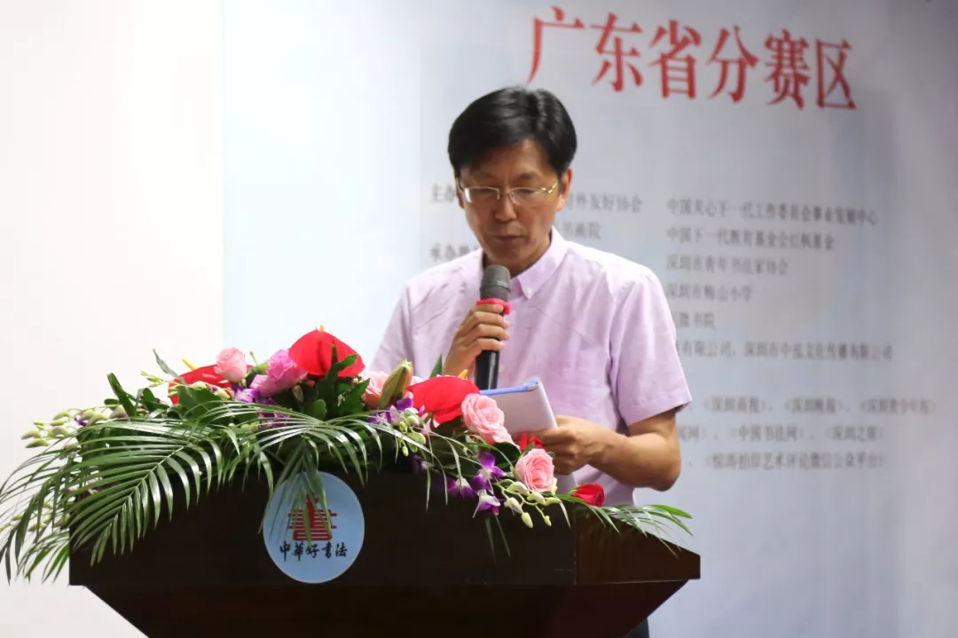 深圳市老干局副局長(zhǎng)、深圳市關(guān)心一下工作委員會(huì)辦公室領(lǐng)導(dǎo)王小蓉女士宣布“中華好書(shū)法”全國(guó)中小學(xué)師生書(shū)法大賽廣東省分賽區(qū)比賽正式啟動(dòng)