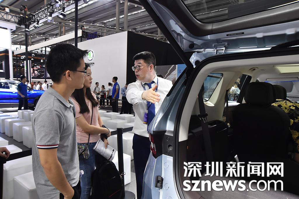 購車顧問向參觀的市民介紹車輛性能