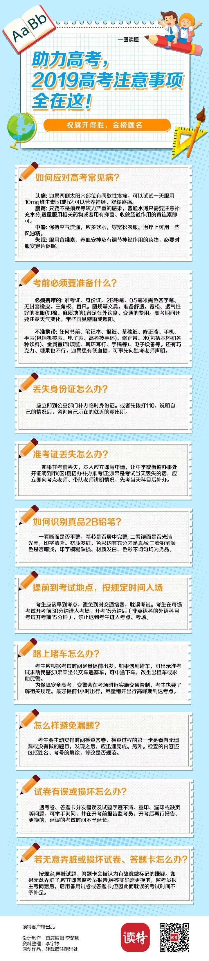 另外,小編還專門為你們準備了一圖讀懂高考注意事項。