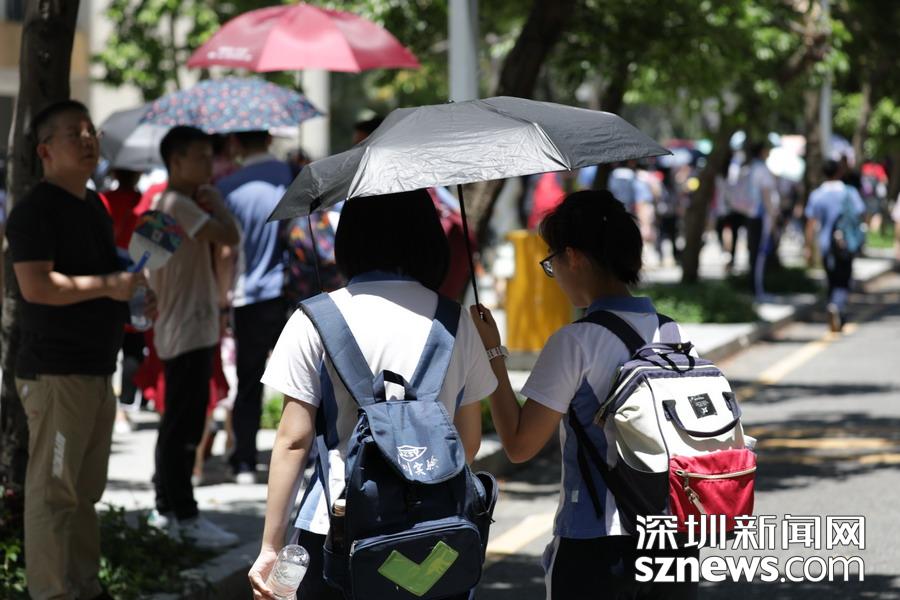 高考首日,深圳夏天的炎熱初顯威力,各路高考保障人員在熾熱的陽光下有序開展工作:交警鐵騎護(hù)送考生順利抵達(dá)考場(chǎng);愛心出租車免費(fèi)接送考生;高考志愿者幫助協(xié)調(diào)考場(chǎng)外秩序……同時(shí),比陽光更“熾熱”的是送考家長們的熱切和關(guān)心。