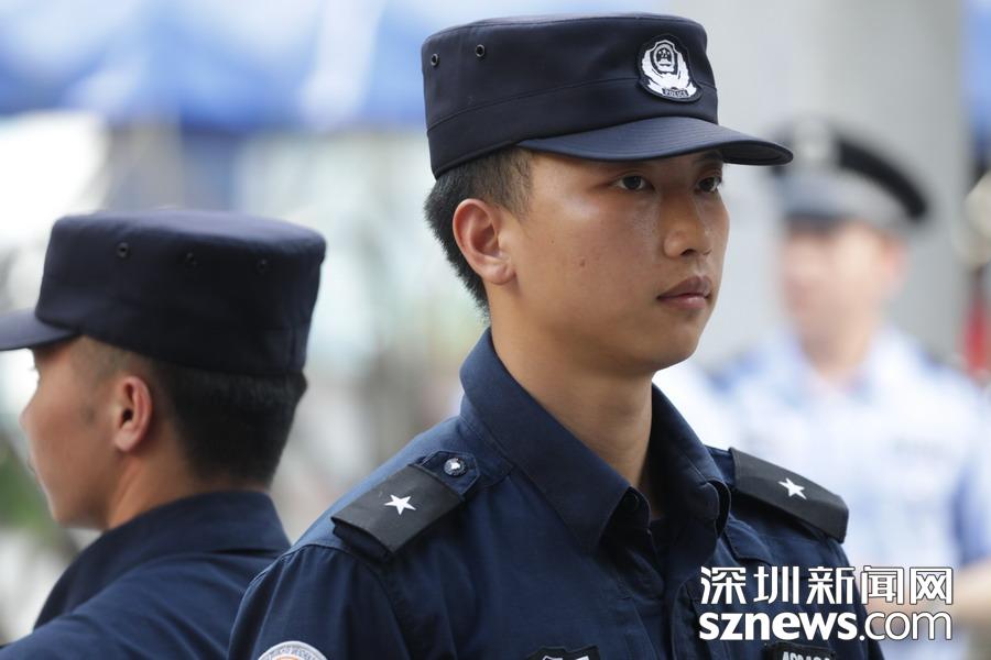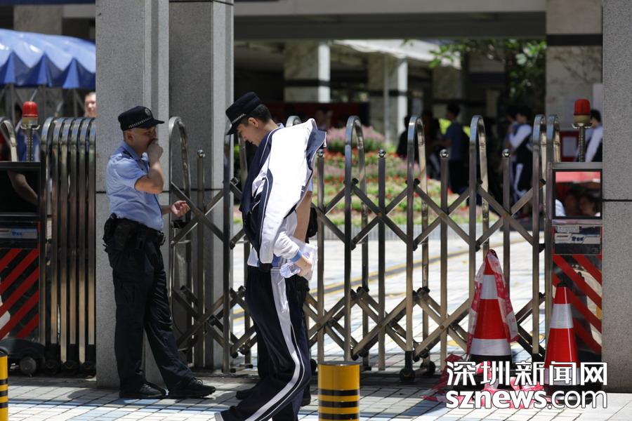深圳實(shí)驗(yàn)中學(xué)考點(diǎn)外,高考保障人員正在執(zhí)勤