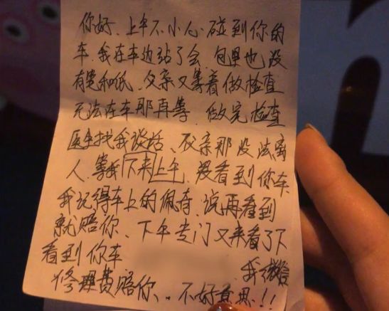 王女士發(fā)現(xiàn)自家車門處被撞了一個(gè)坑,