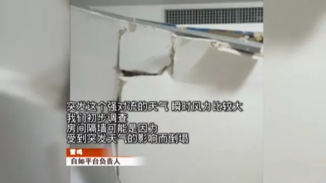 而對于這次隔斷墻的突然倒塌,負(fù)責(zé)人表示,出現(xiàn)問題是個(gè)例,可能和昨天的強(qiáng)風(fēng)暴雨天氣有關(guān)。