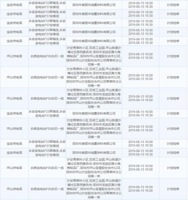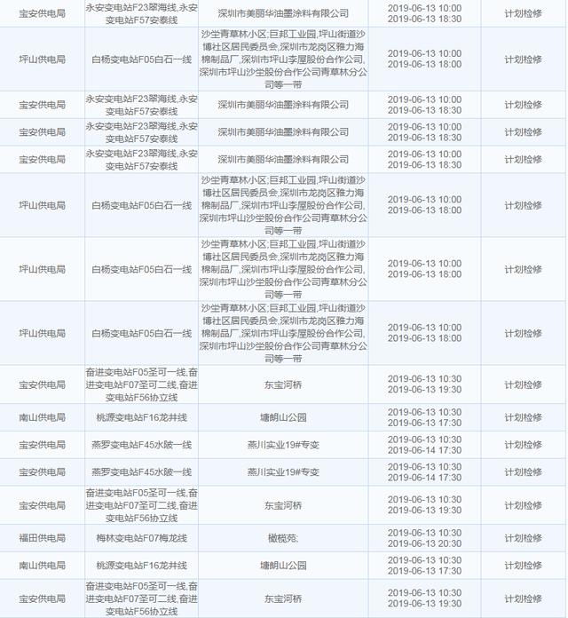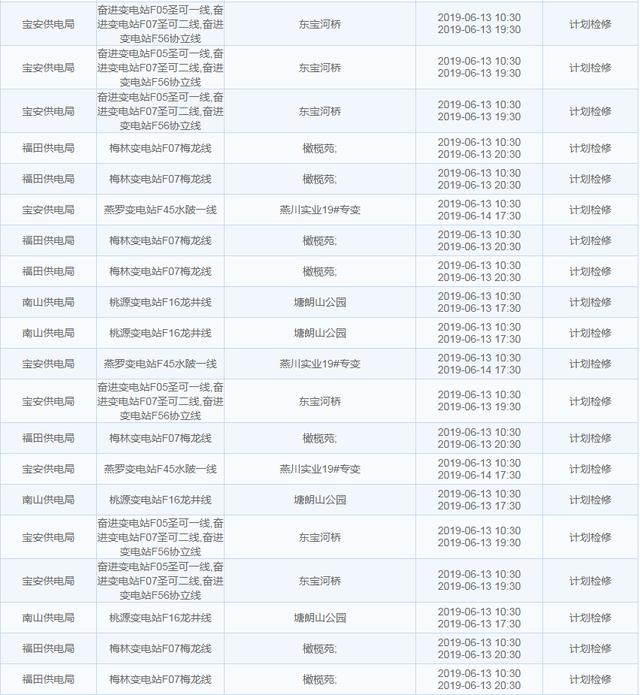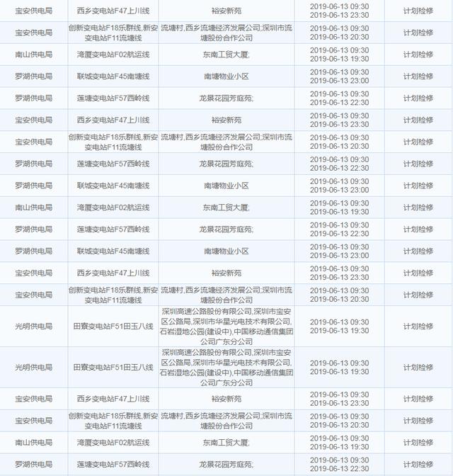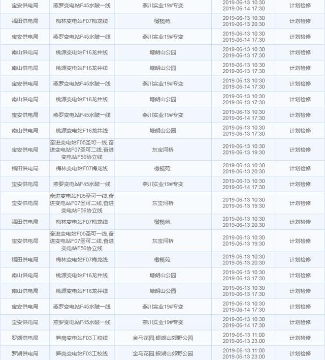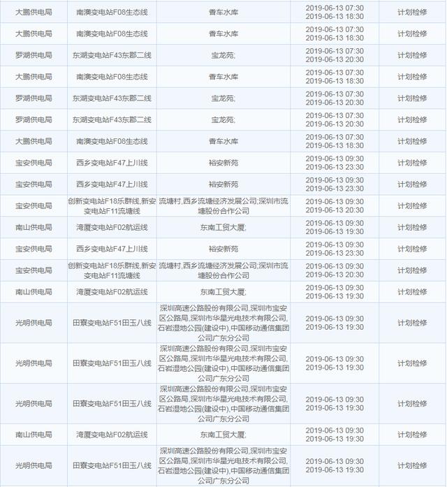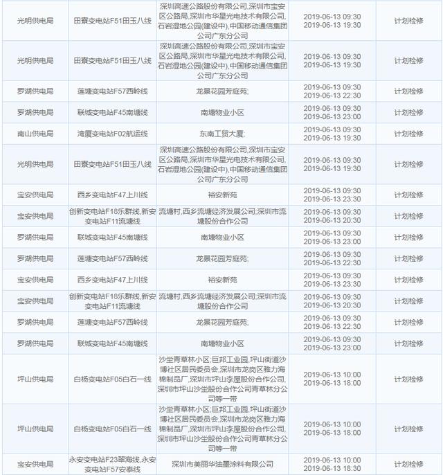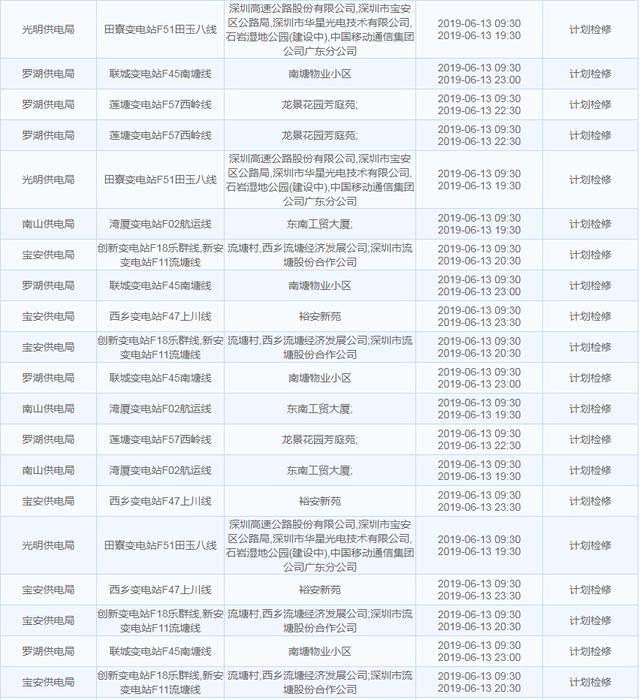 南方電網(wǎng)發(fā)布6月13日至6月16日深圳停電計劃 涉及多個區(qū)