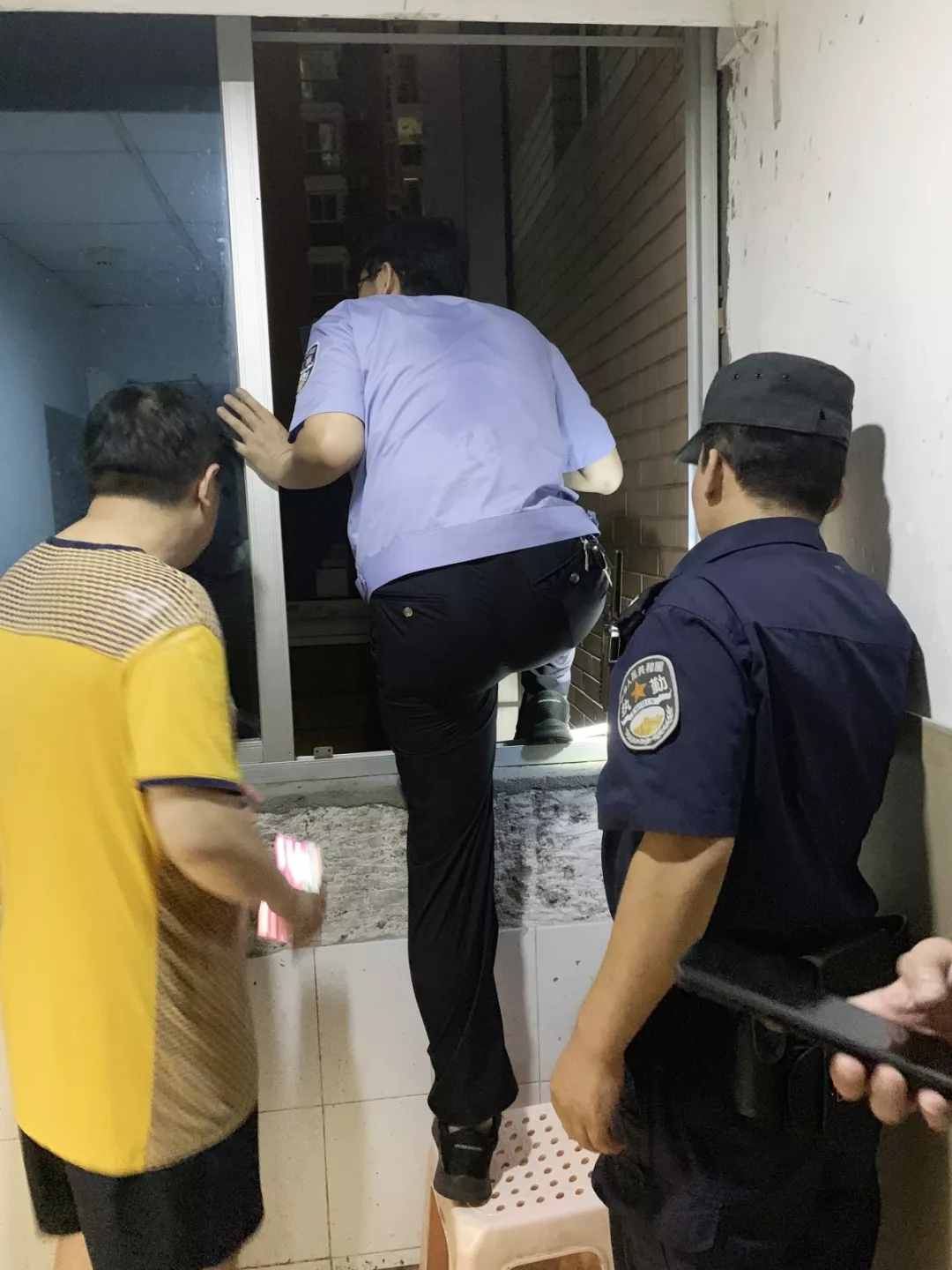 時(shí)間一分一秒地流逝,救援工作難以繼續(xù),跳樓女子情緒越來越激動(dòng)……現(xiàn)場,劉智所長當(dāng)機(jī)立斷,突然做出了一個(gè)驚人的舉動(dòng):只身一人,在沒有任何保護(hù)措施的情況下,跳到窗外平臺(tái)上,與兩名跳樓女子進(jìn)行溝通,并嘗試慢慢靠近,抓住機(jī)會(huì)實(shí)施營救。