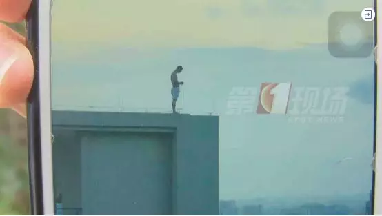 站在了小區(qū)一棟住宅樓的樓頂邊緣上