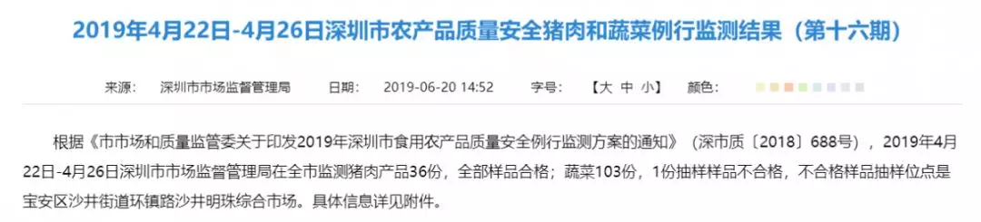 最近的深圳 真的特別火辣 辣到讓人不敢直視 滿腦只想著怎么降溫 雖然吃雪糕很爽 但一直吃不能一直爽 因?yàn)?/p> 廣東人會(huì)心一笑 開始喝起了涼茶 至于吃 最近流行起了一種說(shuō)法 吃菜能降溫 作為吃菜星人食安君 覺得此法可以一試 但在此之前 必須先關(guān)注最新的菜肉抽檢資訊呀 2019年4月22日-4月26日 共抽檢36份豬肉和103份蔬菜 豬肉抽樣樣品全部合格 蔬菜有1份抽樣樣品不合格趕緊來(lái)看看 是哪份蔬菜抽樣樣品不合格? 不合格樣品抽樣信息 最后 記住要時(shí)刻關(guān)注抽檢信息哦 想要身體健康 就從守護(hù)自己的菜籃子做起! 食安君提醒大家 2019年深圳市食品安全宣傳周啟動(dòng)儀式 就要開始啦! 你,期待嗎? 編輯整理:深圳食事藥聞 轉(zhuǎn)載請(qǐng)注明以上內(nèi)容