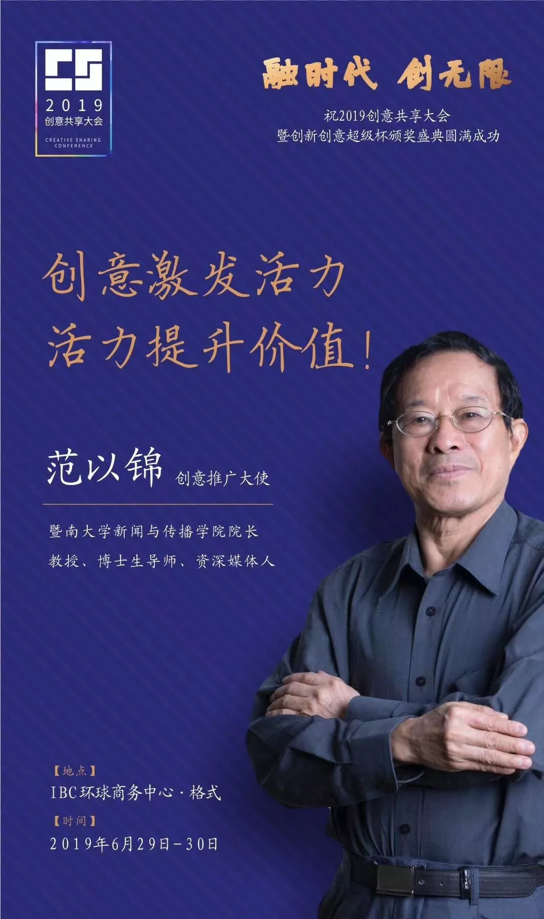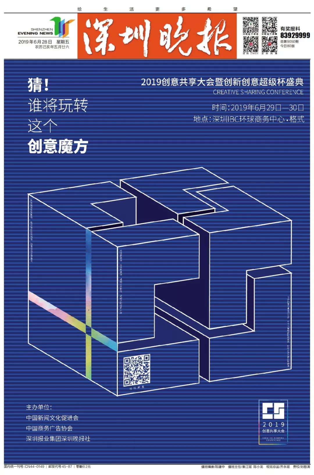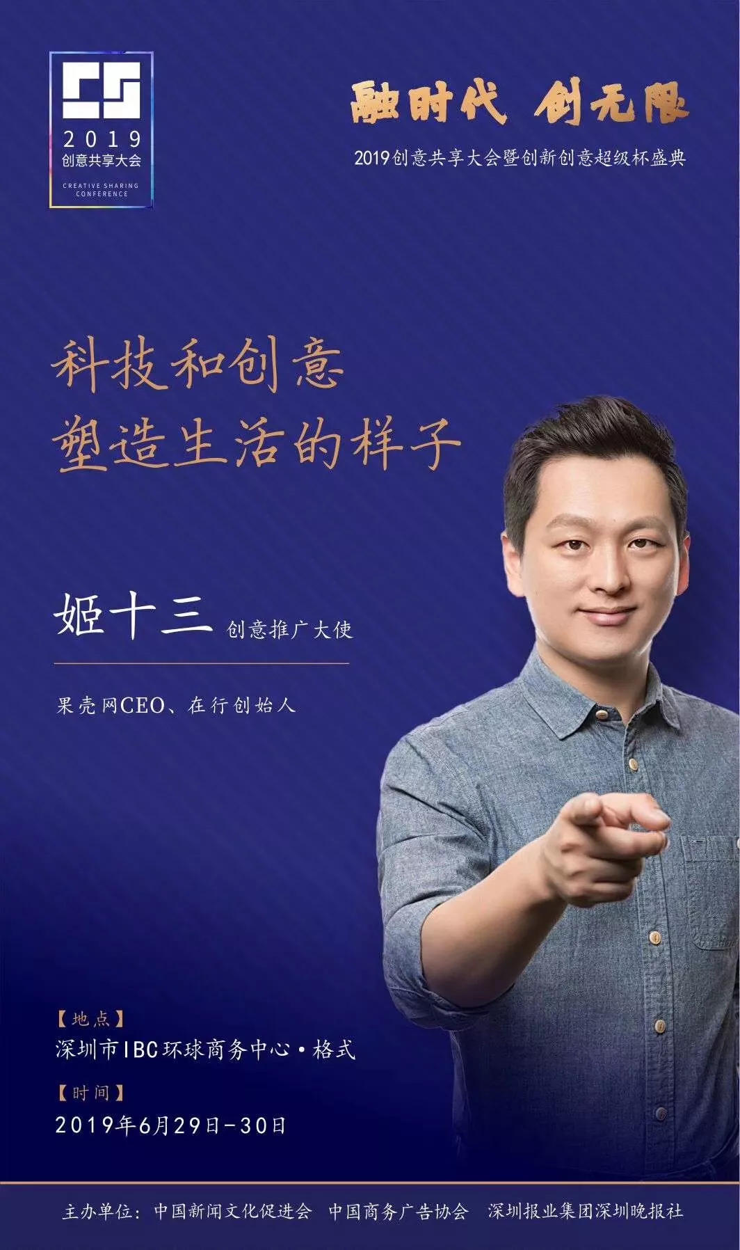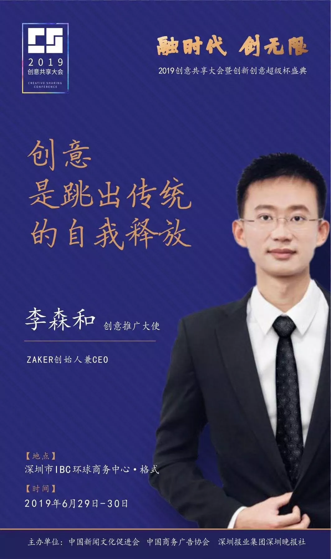 為了展現(xiàn)創(chuàng)意中國的精神風(fēng)貌和創(chuàng)意傳媒的文化力量,構(gòu)建創(chuàng)新創(chuàng)意共同體,擘畫美好圖景和未來趨勢,2019年6月29日至30日,由中國新聞文化促進(jìn)會、中國商務(wù)廣告協(xié)會、深圳報業(yè)集團(tuán)深圳晚報社等聯(lián)合主辦的“融時代創(chuàng)無限——2019創(chuàng)意共享大會暨創(chuàng)新創(chuàng)意超級杯盛典”將在深圳市IBC環(huán)球商務(wù)中心隆重舉辦。