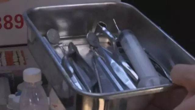 車內(nèi)用于給人看牙的牙鉗和其它設(shè)備