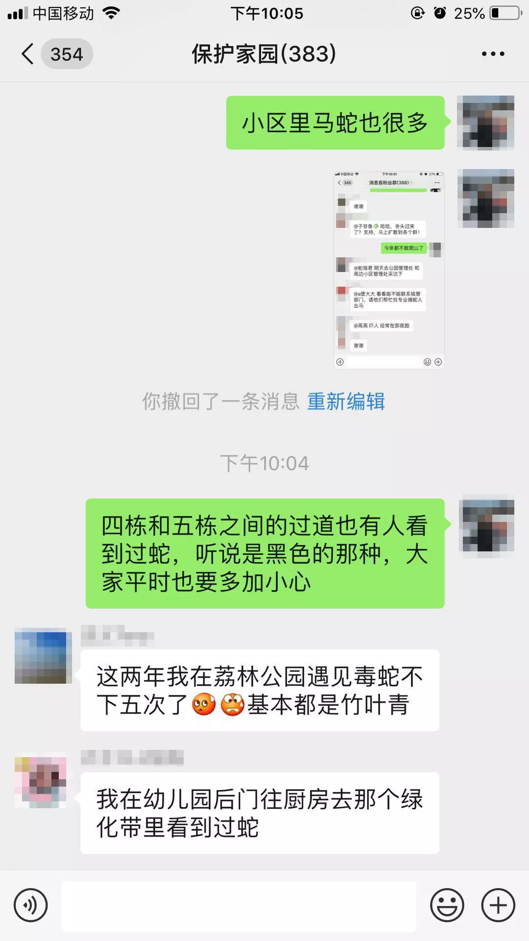 ▲消息報粉絲在群里報料,荔林公園有蛇出沒。