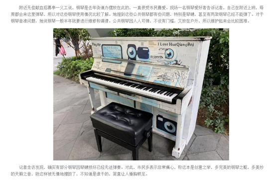 不過(guò),可正當(dāng)市民想上前去體驗(yàn)一把,發(fā)現(xiàn)鋼琴鍵盤(pán)蓋被亂涂亂畫(huà),且部分琴鍵已經(jīng)損壞,這讓不少喜歡鋼琴的市民十分氣憤和痛心。
