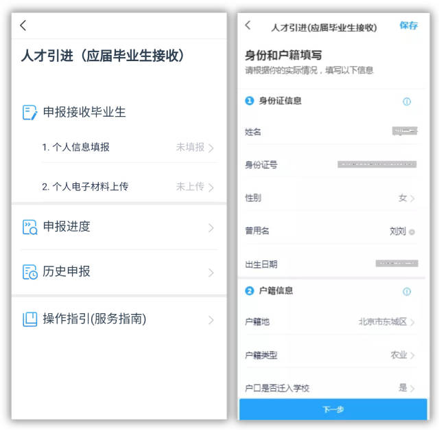 畢業(yè)生根據(jù)個人實際情況,按照系統(tǒng)提示填寫身份和戶籍信息、教育和綜合信息兩大類信息。