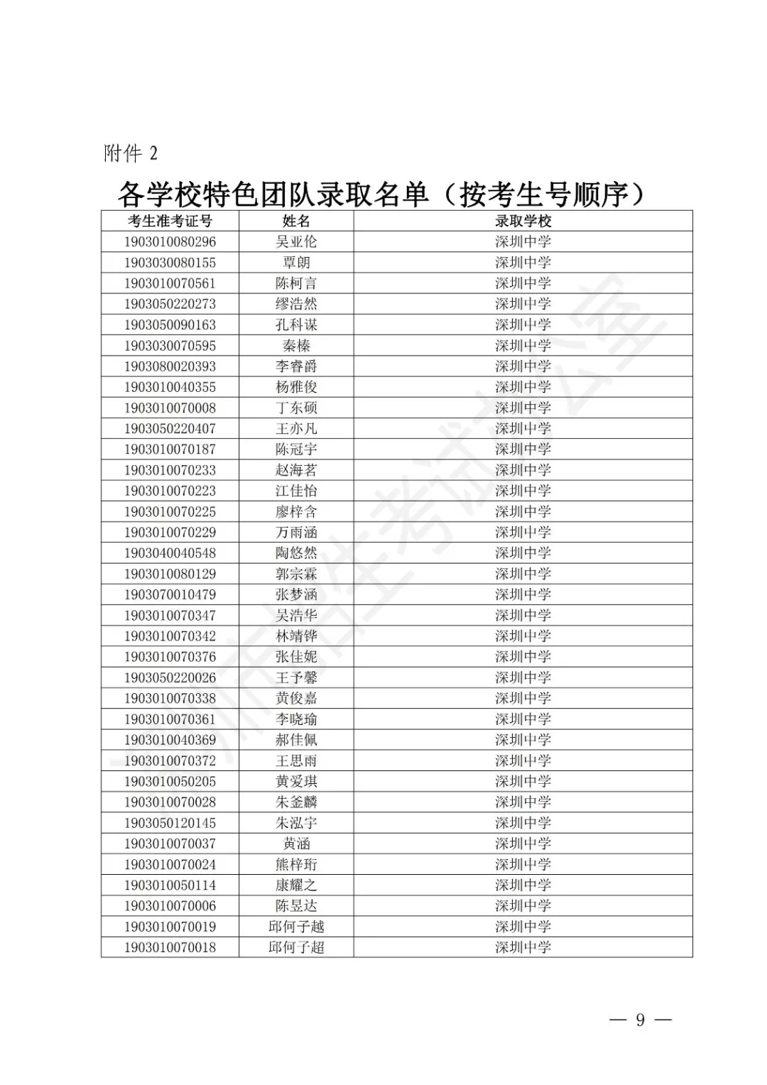 深圳市2019年公辦高中特色團(tuán)隊(duì)錄取標(biāo)準(zhǔn)
