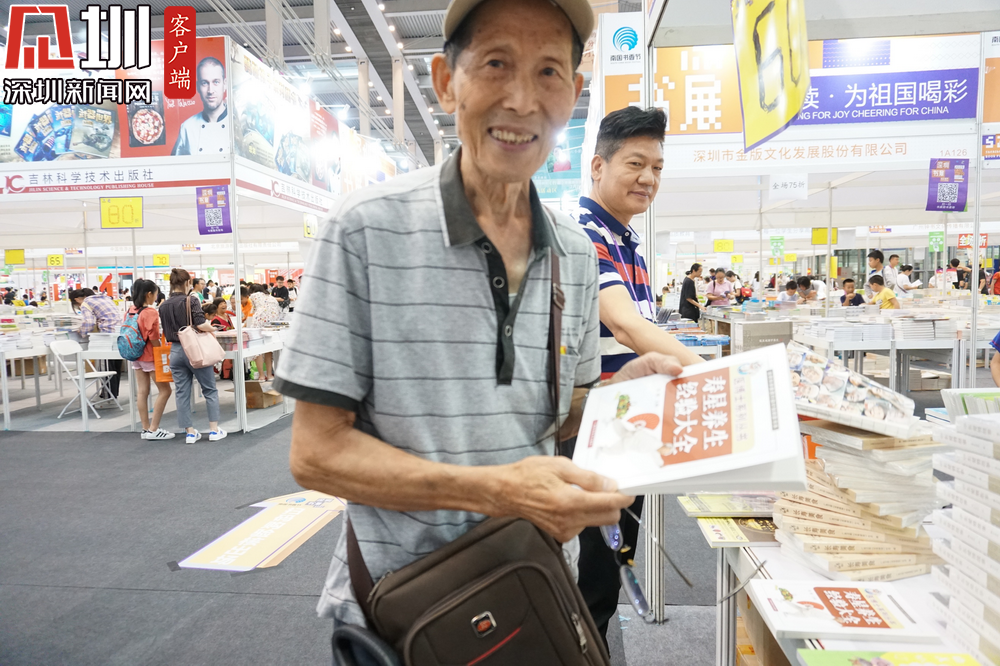 老爺爺已86歲,來深圳40多年了,見證了深圳這座城市從小漁村轉變?yōu)楝F代化的城市,他精神矍鑠,神采奕奕,向記者展示他買的各類書。