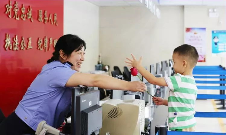 民警吳艷急忙站起來(lái),雙手接過(guò)老人的材料,一邊安撫老人,一邊耐心地詢問(wèn)情況。