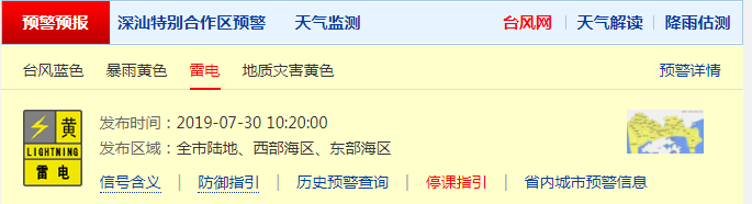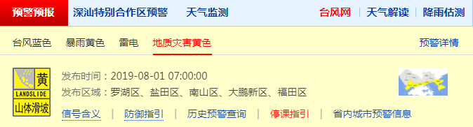 深圳市氣象局發(fā)布四個(gè)預(yù)警信號