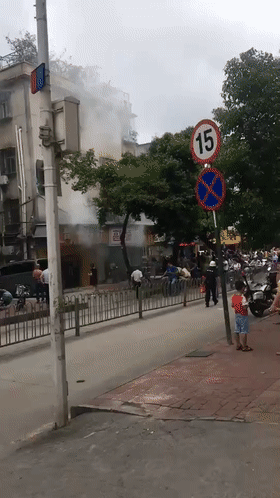 在龍崗區(qū)長吉路一家燒烤店,幾名店員把串好的羊肉串?dāng)[上燒烤爐,剛一打開機(jī)器就起火了,現(xiàn)場濃煙沖起10多米高。