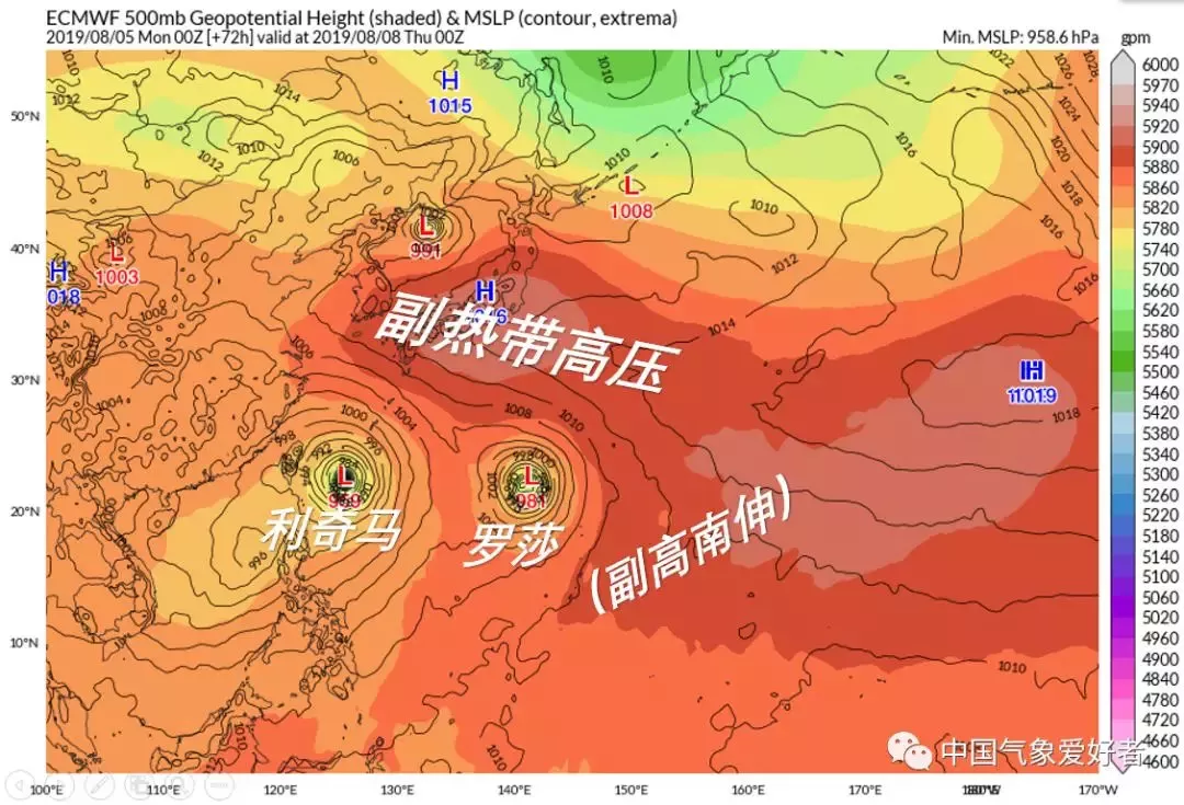 羅莎臺(tái)風(fēng)將會(huì)是一個(gè)又大又強(qiáng)的臺(tái)風(fēng)。由于個(gè)頭太大,副高壓不住,所以它不會(huì)來(lái)我國(guó),最大可能是緩慢北上登陸日本。不過(guò),羅莎將會(huì)阻止副高在利奇馬南側(cè)西伸,并且對(duì)利奇馬有互斥作用,是利奇馬臺(tái)風(fēng)的“導(dǎo)演”之一。總體看來(lái),羅莎將會(huì)對(duì)利奇馬施加向西的作用力,促使利奇馬更靠近我國(guó)。