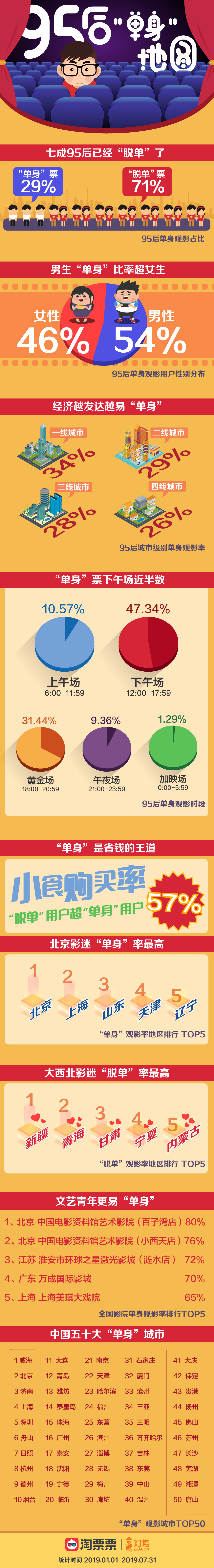 見圳客戶端·深圳新聞網(wǎng)2019年8月7日訊(見圳客戶端、深圳新聞網(wǎng)記者 陳婕)七成95后已經(jīng)“脫單”了、經(jīng)濟(jì)越發(fā)達(dá)地區(qū)“單身”率越高,北京、上海、山東成最“單身”地區(qū)……七夕來臨之際,用戶觀影決策平臺淘票票和燈塔專業(yè)版聯(lián)合發(fā)布了針對觀影人群的《95后“單身”地圖》,以“單身”觀影的維度,去側(cè)面觀察時下年輕人的情感狀態(tài)。