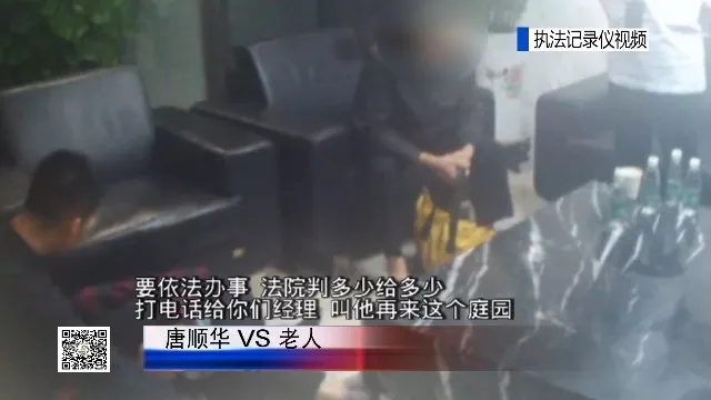 有兩位老人正在“大鬧”辦公大樓