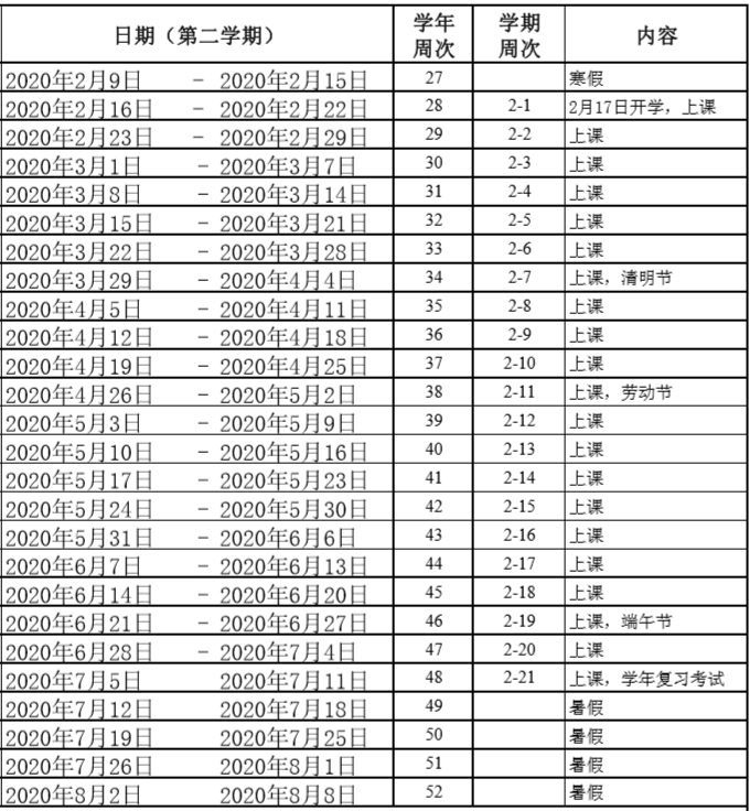 2019——2020 學(xué)年義務(wù)教育學(xué)校校歷