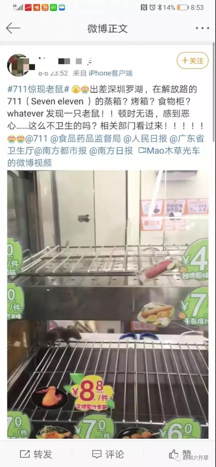 近日,有網友爆料稱自己在羅湖解放路7-11便利店的熱柜中發(fā)現(xiàn)一只老鼠