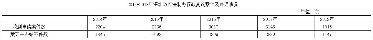 2014-2018年深圳政府法制辦行政復(fù)議案件及辦理情況