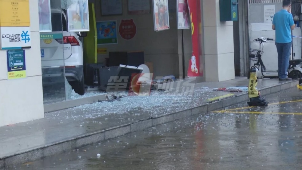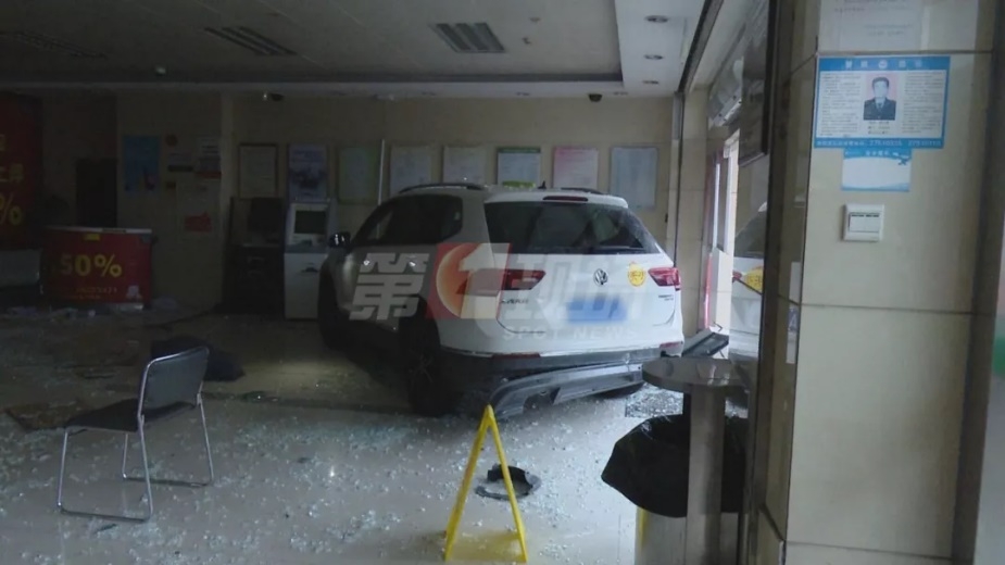 有人把車直接開進了銀行大廳……