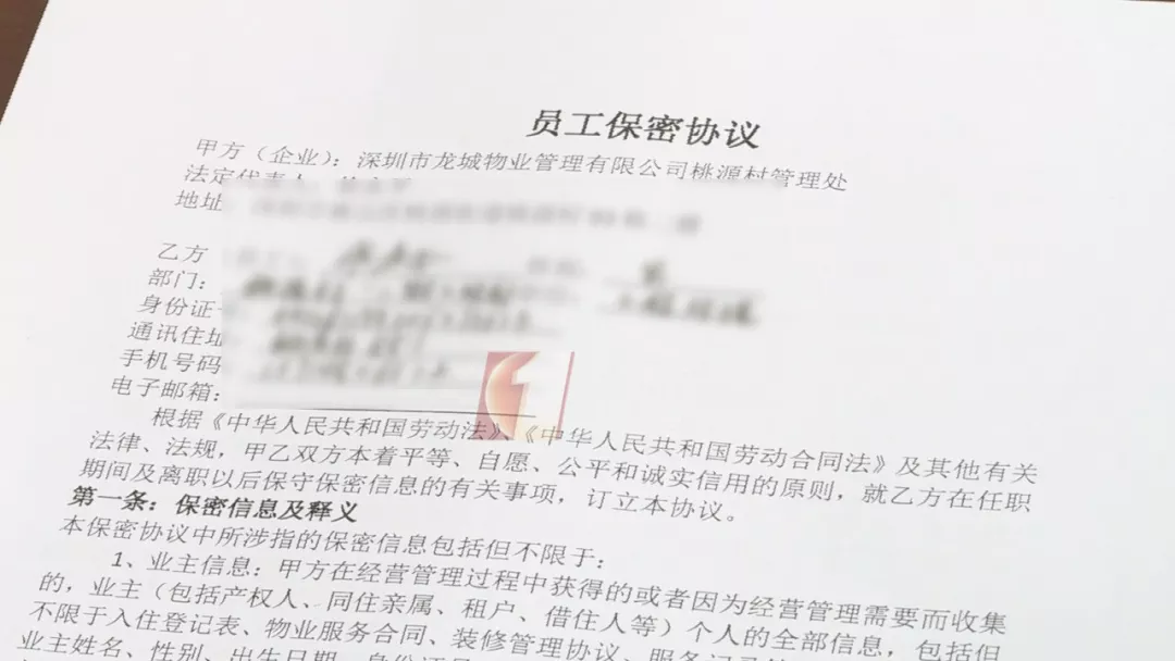 管理處提供了公司和這兩位員工在幾年前簽訂的保密協(xié)議,丁某某為客戶(hù)部高級(jí)經(jīng)理,官某某為工程部經(jīng)理,保密協(xié)議中第一條就是業(yè)主信息的隱私保護(hù)。