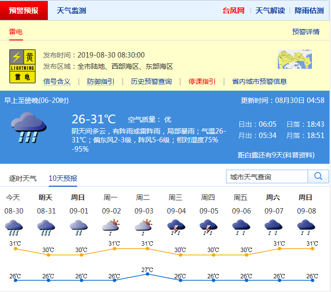 見圳客戶端·深圳新聞網(wǎng)2019年8月30日訊 今天多云間陰天,轉(zhuǎn)中到大雨,局部暴雨;26-31℃;偏東風(fēng)2-3級,陣風(fēng)6-7級;濕度75%-95%。臺風(fēng)“楊柳”未來趨向越南,繼續(xù)遠(yuǎn)離我市。預(yù)計31日至9月1日深圳多雷雨,局部暴雨,2-3日有短時陣雨。