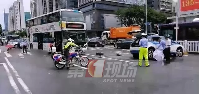 與一輛雙層大巴和一輛私家車(chē)發(fā)生碰撞