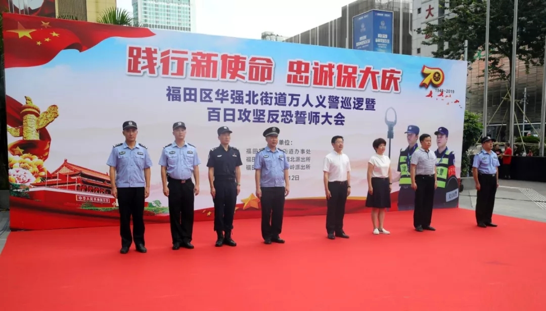 據(jù)了解,為全面推進(jìn)群防群治建設(shè),夯實(shí)基層基礎(chǔ)工作,拓寬群防群治領(lǐng)域,提升群防群治效能,筑牢社會(huì)治安防控體系,12日上午9時(shí)30分,深圳市福田區(qū)華強(qiáng)北街道萬人義警巡邏暨百日攻堅(jiān)反恐誓師大會(huì)在華強(qiáng)酒店廣場舉行,華強(qiáng)北街道辦黨工委書記陳曉中,福田公安分局副局長譚慶彬,華強(qiáng)北街道副書記楊華蘭,福田公安分局治安科科長左樂,華強(qiáng)北派出所副所長張瓊漫、黃強(qiáng),通心嶺派出所副所長劉景波等相關(guān)部門負(fù)責(zé)人參加儀式并發(fā)表講話。本次大會(huì)的舉行,意味著福田義警隊(duì)伍再添中堅(jiān)力量。