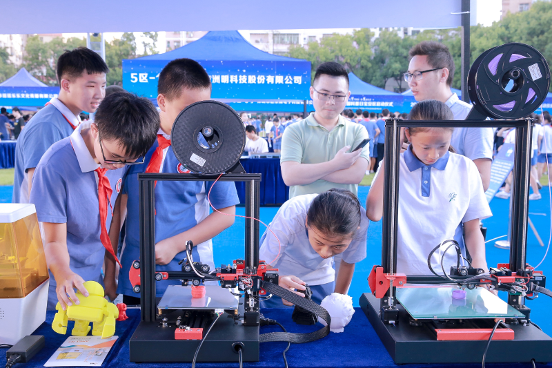 據(jù)了解,“禮贊共和國,智慧新生活”是今年全國科普日的主題。本次全國科普日寶安區(qū)活動(dòng)分為航天科技裝備、太空知識長廊、氫能轉(zhuǎn)化實(shí)驗(yàn)、 VRAR活動(dòng)體驗(yàn)、寶安區(qū)科普教育基地介紹等五個(gè)版塊,呈現(xiàn)出航天科技與太空知識相結(jié)合的科普盛宴。除此之外,深圳市洲明科技股份有限公司帶來了智慧路燈及節(jié)能系統(tǒng)的介紹;深圳市愛能特科技有限公司的3D打印讓學(xué)生們大開眼界,想像的物品只要設(shè)計(jì)出來就能打??;韓端科技 (深圳)有限公司帶來的機(jī)器人舞蹈揮舞著國旗震撼了全場……操場上、實(shí)驗(yàn)室里處處散發(fā)出著科技的魅力。
