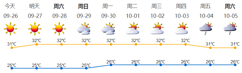 晴天干燥;氣溫25-31℃;東北風2-3級;相對濕度40%-80%。