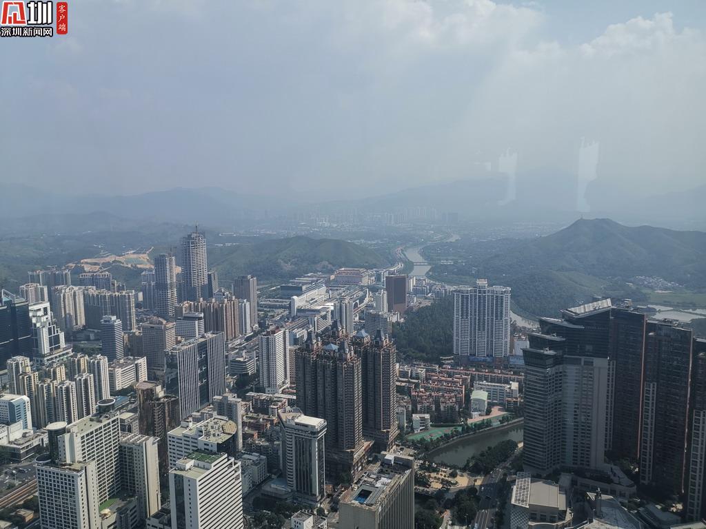 站在地王觀光?深港之窗,俯瞰深圳。
