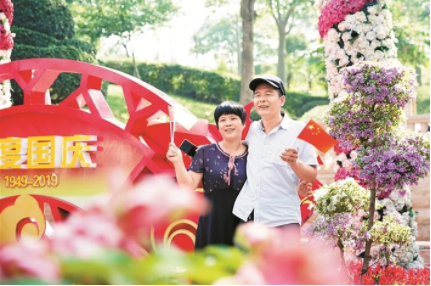 10月2日燈光秀現(xiàn)場,深圳市公安局福田公安分局機(jī)動(dòng)訓(xùn)練大隊(duì)摩托車中隊(duì)隊(duì)員幫助年邁的老奶奶尋找合適的觀燈位置。