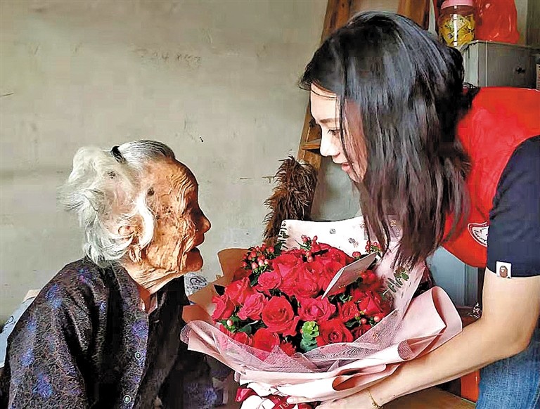 社區(qū)為老人送來(lái)慰問(wèn)品及鮮花