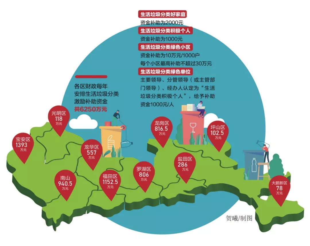 《辦法》明確規(guī)定,各區(qū)財(cái)政每年按以下額度安排生活垃圾分類激勵(lì)補(bǔ)助資金: