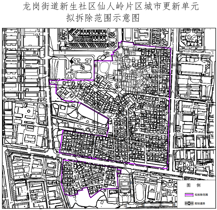 計劃顯示,更新單元位于龍崗街道,擬拆除重建范圍254136平方米,擬更新方向為居住、商業(yè)等功能。