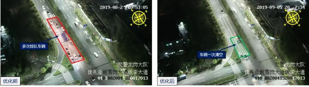 深圳交警立即通過視頻跟蹤該路口信號配時,增加坂李大道/坂雪崗大道、坂李大道/坂瀾大道東行綠燈時間,減少路口排隊次數(shù),目前路口運行正常,路口車輛均可一次通行。