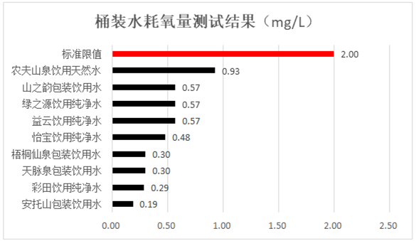 12款桶裝水污染物安全測(cè)試均符合標(biāo)準(zhǔn)要求。其中,耗氧量方面,所有飲用純凈桶裝水和其它飲用桶裝水耗氧量均符合標(biāo)準(zhǔn)要求,安托山、彩田、天脈泉和梧桐仙泉包裝飲用水受有機(jī)污染更少;所有飲用純凈桶裝水和其它飲用桶裝水三氯甲烷符合標(biāo)準(zhǔn)要求,農(nóng)夫山泉飲用天然水和山之韻包裝飲用水未檢出,表現(xiàn)更好。