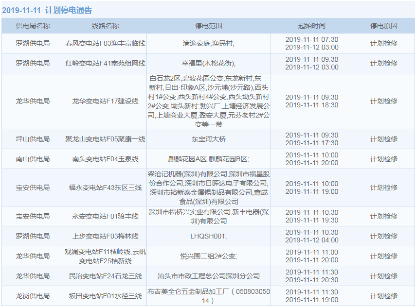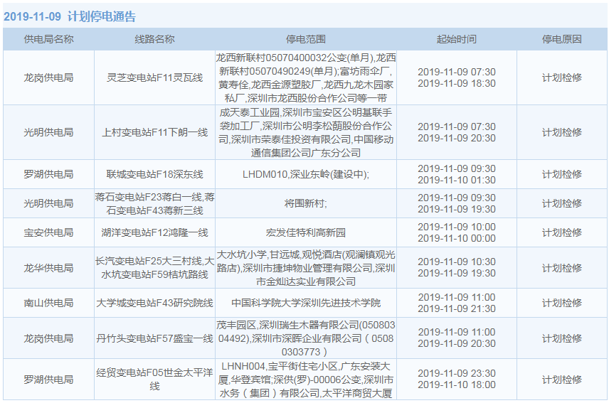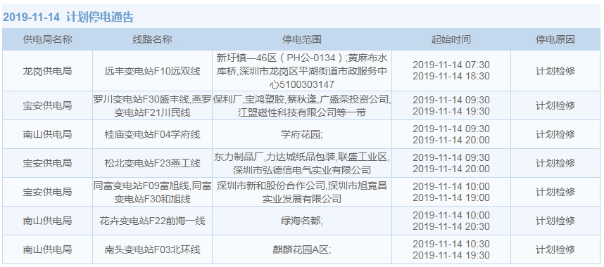 見(jiàn)圳客戶端·深圳新聞網(wǎng)2019年10月29日訊 據(jù)中國(guó)南方電網(wǎng)最新消息:11月1日至11月15日,深圳這些地方將停電!快來(lái)看看有沒(méi)有你家的吧。